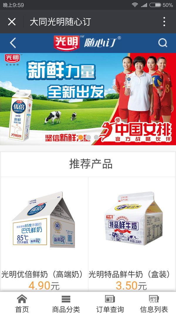 經(jīng)過(guò)緊張的開(kāi)發(fā)和功能調試,近日,大同光明巴氏鮮奶隨心訂公眾平臺正式上線(xiàn)。