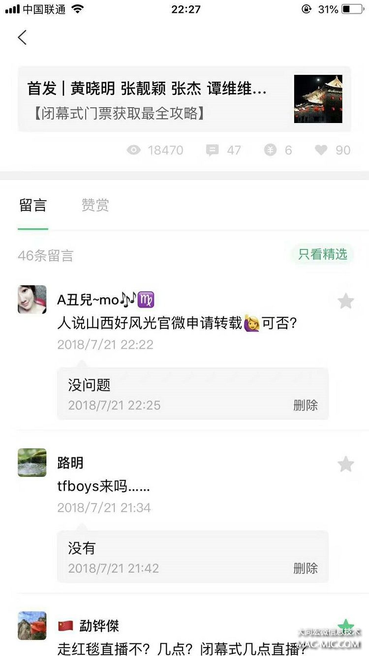 在獲得小編同意并授權后,當晚11:30分左右,由新大同原創(chuàng )《首發(fā) | 黃曉明 張靚穎 張杰 譚維維 白百何...成龍電影周閉幕式最強陣容》在人說(shuō)山西好風(fēng)光官微發(fā)送,將成龍電影周閉幕式消息分享給全國、全世界的粉絲。