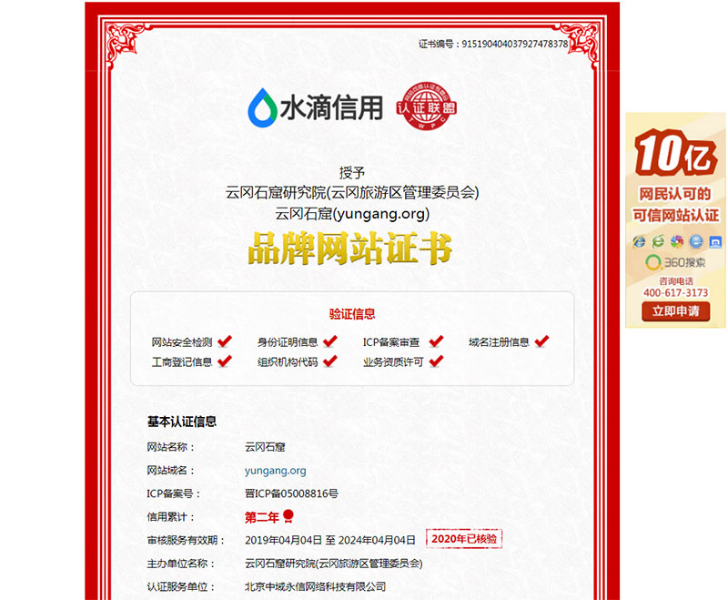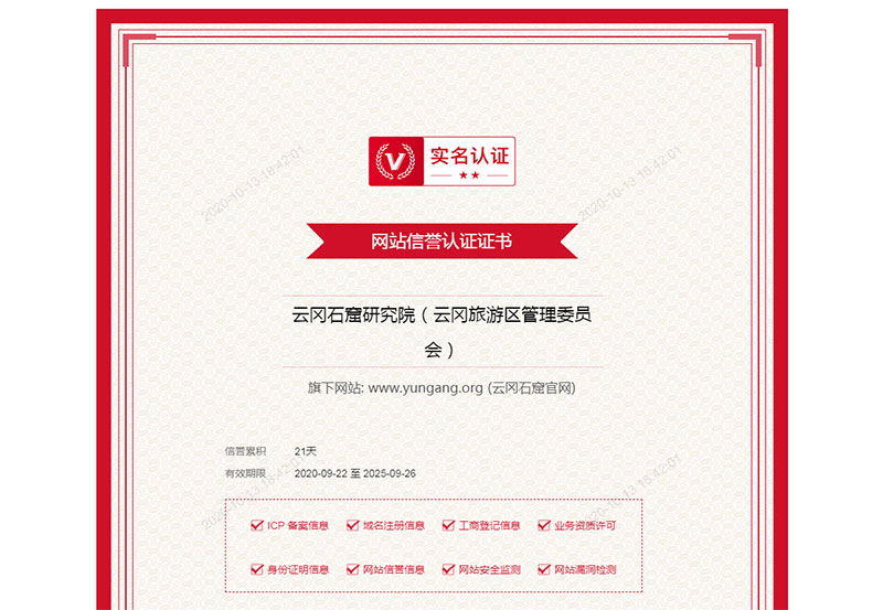 祝賀云岡石窟網(wǎng)站通過(guò)信用聯(lián)盟安全認證檢測及官網(wǎng)標識