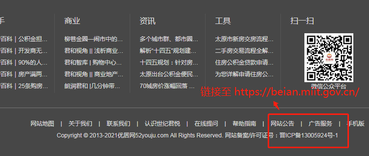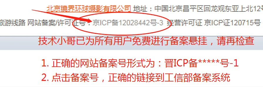 截至目前,宏微技術(shù)小哥已經(jīng)加班加點(diǎn),為所有用戶(hù)免費進(jìn)行了網(wǎng)站備案號懸掛和鏈接指向修改。因修改涉及客戶(hù)數量多,修改范圍廣(此前只要求懸掛主體單位備案號如晉ICP備****號),各家客戶(hù)采用的網(wǎng)站系統和數據形式不同,雖反復檢查,仍唯恐遺漏,所以請廣大網(wǎng)站備案用戶(hù)務(wù)必在電腦端打開(kāi)網(wǎng)站,查看首頁(yè)底部的網(wǎng)站備案號是否為“晉ICP備****號-1”形式,并測試點(diǎn)擊備案號可以打開(kāi)工信部備案系統https://beian.miit.gov.cn,如出現遺漏或鏈接無(wú)法打開(kāi),請速速與我們聯(lián)系,避免被處罰或取消接入等風(fēng)險。